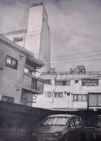 Instead of going for the obvious - cool-looking, newly built high-rise offices I wanted to depict the night scenes of Tokyo that are not so widely seen - back streets, empty alleys, tall buildings, and empty parking lots.